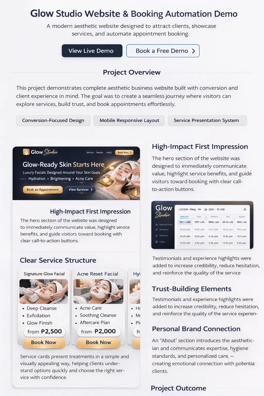 I create clean, conversion-focused websites and funnels that attract visitors, capture leads, and guide prospects toward booking or taking action.